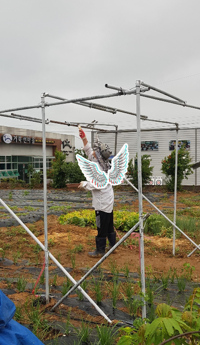 이제 기둥마다 수세미를 심고
