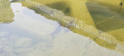 물은 아주 많아서 물속이 훤희 보이는데, 그 속에 사는 작은 물고기를 찍어서 보니